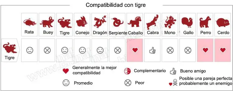 - Llevarse mal con: Buey, Serpiente, Mono o Gallo.